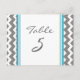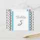 Elegant and modern teal blue, dark charcoal gray and white wedding table number cards with retro and fun chevron zigzags pattern. Customize these cards to create custom table number cards for each table at your wedding. Pattern available in a wide range of matching wedding products.