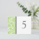 Elegant and classic bright apple green, gray and white wedding table number cards with classic and chic vintage floral damask pattern. Customize these cards to create custom table number cards for each table at your wedding. Pattern available in a wide range of matching wedding products.