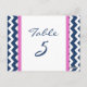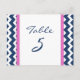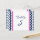 Elegant and modern fuchsia hot pink, dark navy blue and white wedding table number cards with retro and fun chevron zigzags pattern. Customize these cards to create custom table number cards for each table at your wedding. Pattern available in a wide range of matching wedding products.