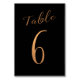 Wedding table number copper glitter black