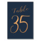Faux copper metallic gold foil formal calligraphy script wedding reception table card. The dark navy blue background color is editable. You can change it after pushing CUSTOMIZE button.