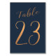 Faux copper metallic gold foil formal calligraphy script wedding reception table card. The dark navy blue background color is editable. You can change it after pushing CUSTOMIZE button.