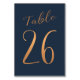 Faux copper metallic gold foil formal calligraphy script wedding reception table card. The dark navy blue background color is editable. You can change it after pushing CUSTOMIZE button.