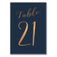 Faux copper metallic gold foil formal calligraphy script wedding reception table card. The dark midnight navy blue background color is editable. You can change it after pushing CUSTOMIZE button.