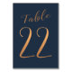 Faux copper metallic gold foil formal calligraphy script wedding reception table card. The dark navy blue background color is editable. You can change it after pushing CUSTOMIZE button.