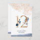 Wedding table number in navy, blush, and gold