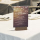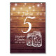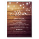 Wedding Seating Place / Table Number / Escort Card with Menu Card Templates - Elegant Mason Jar and String Lights on Rustic Wood Background.