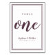 This design was created for smaller intimate wedding celebrations. Simple, minimalist and elegant Wedding Table Number ONE design features a contemporary design with a double frame border in purple on a crisp white background. The chic design provides timeless yet modern sophistication. Personalize wedding table design with your wedding details in purple lettering and script. The back of the card is a duplicate of the front. Order one for every table with the individual table numbers.