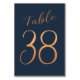 Faux gold copper metallic foil formal calligraphy script wedding reception table card. The dark midnight blue background color is editable. You can change it after pushing CUSTOMIZE button.