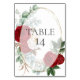 Wedding Table Number | Eucalyptus leaves, whimsical foliage along with burgundy and ivory peonies grace a gold oval frame. Bold crimson red reverse. Features a simple classic text style (that can be changed if you like just Click Personalize this template then in the drop down, choose Click to customize further- here you can change the font and text colors as well as background color) This is part of a design coordinated wedding suite collection designed by the BarefootBride™.
