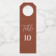 Terracotta Brown Wedding Bottle Hanger Tags with Table Number. Check out more products with this design in the collection below.