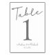Casual Signature Script Wedding Table Numbers (Gray): These table numbers feature a loose hand drawn script in gray. Change your names and date at the bottom or delete them if you don't need them. Put in fancy table number stands to add a elegant, yet casual display to your wedding reception tables.