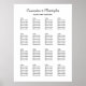 A simple wedding guest seating chart poster for sixteen tables with six guests each. You may change the colors on it if you desire. Click "customize", then on the right, click on the text you want to change. The font colors are below the poster, and the background is below the right hand side.