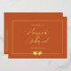 Wedding terracotta and gold foil invitation. Elegant design and great for couples who are using terracotta orange as their feature wedding color. The front features real foil font. The back of the wedding invitation has your invitation details. Terracotta and gold colors. Great terracotta wedding stationery. Part of the Two Hearts wedding design collection. Customize the text on the front and back of the wedding invitation. Use the template to create your own wedding terracotta and gold foil invitation.