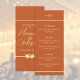 Wedding menu featuring terracotta and gold colors. Great day-of stationery for couples who are using terracotta as their wedding color. Customize the text on the front and back of the menu. Use the template to create your own wedding terracotta and gold menu.