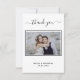 An elegant and modern Thank You card, personalized with your own photo. Add Your photo, the wedding date, your names and the thank you note. A trendy black and white card. The text: Thank you on the front and your names on the back are written with a stylish hand lettered script.