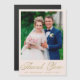 Send a modern custom photo thank you magnetic card to your family and friends to thank them for attending your wedding. This elegant design template features your wedding photo framed in blush. Below in dark gold calligraphy script it reads, "Thank You" with your name and date for you to personalize. This was a joy to create. Best Wishes on your marriage! Designed by artist ©Susan Coffey.