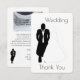 Wedding thank you card black and white bride and groom design. Customise this thank you card with your wedding details. Should you require any help with customising then please contact us through the link on this page. Black and white bride and groom design personalised wedding thank you card