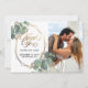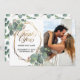 Looking for a photo wedding thank you card? Consider this single photo thank you card featuring chic script text design with eucalyptus and geometric gold frame