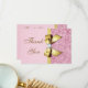 Wedding Thank You Faux Pink Sequins Gold Bow Card