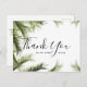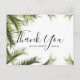 Classic wedding thank you post card template features a Green palm leaves design on the front, and a customizable message at the back. You can personalize it with the customize it button. Send out your wedding thank you message as newly weds to your friends and family using this beautifully, simple thank you wedding photo postcard with the words "thank you" written in a white handwriting script text overlay.
