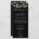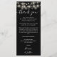 An elegant black and white wedding celebration thank you reception card featuring pretty string lights. Personalized with your special thank you message set in stylish typography. A special keepsake thank you to your guests. Designed by Thisisnotme©