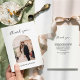 Minimal script photo wedding thank you card with personalized message on the back.