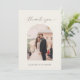 Minimal script photo wedding thank you card with personalized message on the back.