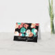 A wedding thank you card. A group of multicolored bubbles bouncing around on a black background. These spherical shapes are bright turquoise green, pastel orange, red rust and cool blue. Contrasting on a black background these circular shapes really pop. Customizable thank you message inside the card.
