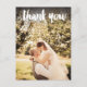 If this postcard had to be described, you could probably call it, black and white, designer, simple, elegant, chic, classy script/cursive brush thank you lettering typography over a full bleed photograph template.