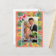 If you had a tropical themed wedding, this is the perfect THANK YOU postcard for your wedding photo. Your photo is surrounded by watercolor tropical flowers and foliage. Thank you handwritten in a brush script over your vertical photo. Gold "Thanks" on the back with a personal message (use message provided or write your own), ending with "with love," in the same brush script and hibiscus flowers. Black gradient overlaps photo so white script stands out. You can eliminate it if it's not needed.