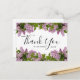 Classic wedding thank you post card template features a pink and purple flower design on the front, and a customizable message at the back. You can personalize it with the customize it button. Send out your wedding thank you message as newly weds to your friends and family using this beautifully, simple thank you wedding photo postcard with the words "thank you" written in a white handwriting script text overlay.