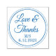 Stylish wedding thank you self inking rubber stamp with custom text and double circle frame. Personalize the text for your wedding needs. Great for stamping favor boxes, bags or tags.
