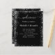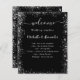 A modern black background, decorated with faux silver sparkles. Personalize and add your names and your wedding day timeline. White text.