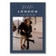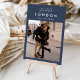 Add a special finishing touch to your wedding reception tables with these custom photo table number cards. Name each table after a memorable travel destination and add a photo and the destination name to these unique card holders. Your photo is aligned at the bottom, with the location name and your initials and wedding date centered at the top on a navy blue background.