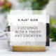 Add a special finishing touch to your wedding reception tables with these custom photo table name cards. Name each table after a memorable travel destination and add a photo and the destination name. Your photo appears in full bleed with an opaque geometric element covering the center, and the location name in modern black lettering and "table" in calligraphy script.