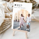 Add a special finishing touch to your wedding reception tables with these custom photo table number cards. Name each table after a memorable travel destination and add a photo and the destination name to these unique table cards. Your photo is aligned at the bottom right in an arched layout, with the location's airport code, destination, initials and wedding date at the upper left, adorned with an airplane icon illustration.