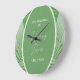 Create a great memento! Tropical green wall clock is a nice wedding, or wedding anniversary, gift and features the couple's name along with the date of the wedding ceremony. Fun yet classic look. Use the template to personalize.