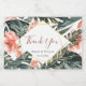 Tropical with Golden Frame and Peach Pink Flowers Mini sparkling wine Bottle labels for your wedding decorated with palm leaves, tropical flowers and burgundy handwritten text thank you. Perfect for a modern wedding in a tropical style. It's easy to personalize.