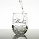 Wedding Typography Calligraphy Bride and Groom Stemless Wine Glass