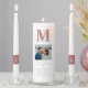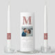 Wedding Unity Candle Set. Add your own photograph, names, initials, and date. Dark pink and silver.