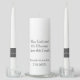 Elegant simple wedding unity candle in white and dark grey to compliment any wedding theme during the church ceremony. Pillar candle reads, May God send His Blessings Upon this Couple. Personalize with Bride and Groom's First Names and Date of Wedding. Left taper candle read, Two Hearts. Right taper candle reads, Joined Together. Original verse design © TamiraZDesigns.