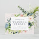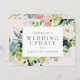 Need to cancel or postpone your wedding due to an unfortunate disaster? Pandemic? Hurricane? Death in the family? Send a notice to friends and family with this elegant navy floral and blush two-sided card. The back includes a large block of custom text with suggested wording and matching watercolor florals. You can also add your new date, website or link to an online streaming service. The front features a blush pink background with navy text and a watercolor floral frame. The colors can be editing by clicking customize.