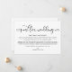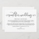 Modern simple wedding update announcement card. Design features calligraphy script ''wedding update'' and details in trendy capital lettering.