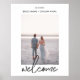 Say welcome to your wedding guests! Personalized Simple Hand Lettering Script Wedding Vertical Welcome Sign template featuring customizable photo, couple names, wedding date, with whimsical and fresh calligraphy. Minimalist, basic and modern design for your vertical couple photos.