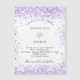 A white background. Decorated with violet, lavender colored faux glitter. Personalize and add your names and details.
