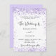 A stylish white background. Decorated with violet, lavender colored faux glitter dust. Personalize and add your names and details.