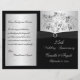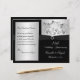 This black and silver floral 25th wedding anniversary vow renewal program has a black PRINTED ribbon and a PRINTED diamond jewels brooch on it. The text is customizable. If you need assistance getting your info to fit, please email niteowlstudio@gmail.com. ****PLEASE NOTE that the higher grade paper is a card stock and does not fold well.