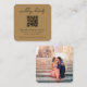 A simple, stylish wedding RSVP QR code square photo enclosure card in a modern minimalist design style. Featuring clean classic typography on a luxe gold background, this elegant card adds a chic and sophisticated touch to your wedding stationery suite. The text can be easily personalized with your names, wedding website, scannable QR code, and custom message to keep your guests informed and connected. The full image on the reverse is for illustration purposes to be replaced with your own photo. The image shown is for illustration purposes only to be replaced with your own photo. The placeholder image is of a happy couple posing for a photo on vacation. Perfect for modern couples who value both style and convenience, this enclosure card helps guests quickly access your wedding website (on sites like The Knot, Zola or With Joy) for RSVPs, travel details, and more. Designed to complement any wedding theme, it’s a timeless and refined way to share important information about your upcoming special day.