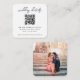 A simple, stylish wedding RSVP QR code square photo enclosure card in a modern minimalist design style. Featuring clean classic typography on a crisp white background, this elegant card adds a chic and sophisticated touch to your wedding stationery suite. The text can be easily personalized with your names, wedding website, scannable QR code, and custom message to keep your guests informed and connected. The full image on the reverse is for illustration purposes to be replaced with your own photo. The image shown is for illustration purposes only to be replaced with your own photo. The placeholder image is of a happy couple posing for a photo on vacation. Perfect for modern couples who value both style and convenience, this enclosure card helps guests quickly access your wedding website (on sites like The Knot, Zola or With Joy) for RSVPs, travel details, and more. Designed to complement any wedding theme, it’s a timeless and refined way to share important information about your upcoming special day.